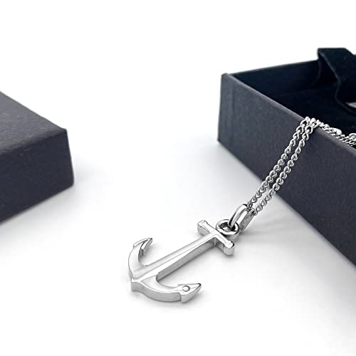 Collana da Uomo Ciondolo Ancora Acciaio Inossidabile 316 con Catena a Maglia Misura Regolabile 60+5