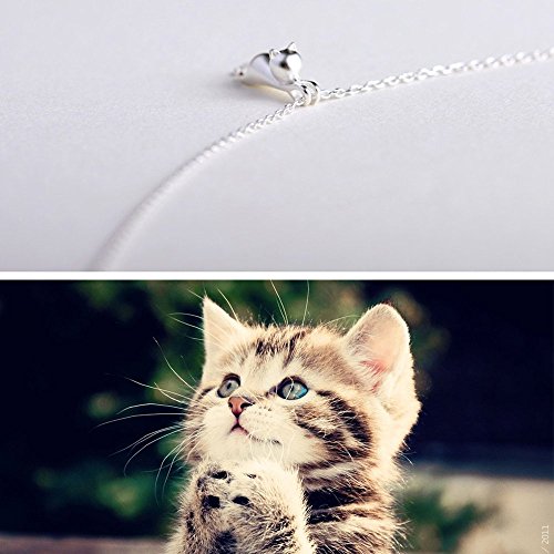 Collana con ciondolo 3D in argento a forma di simpatico gatto, superficie opaca o liscia, argento, colore: Matte, cod. XL