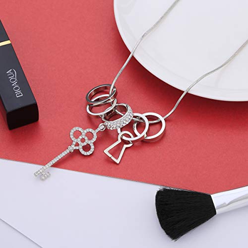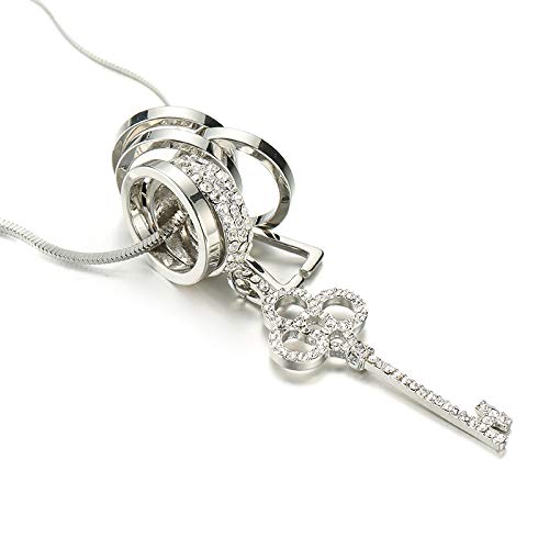 Collana con Ciondolo Chiave e Anello per Donna, Collana a Catena Lunga in Oro Rosa e Argento con Cristallo Lucido