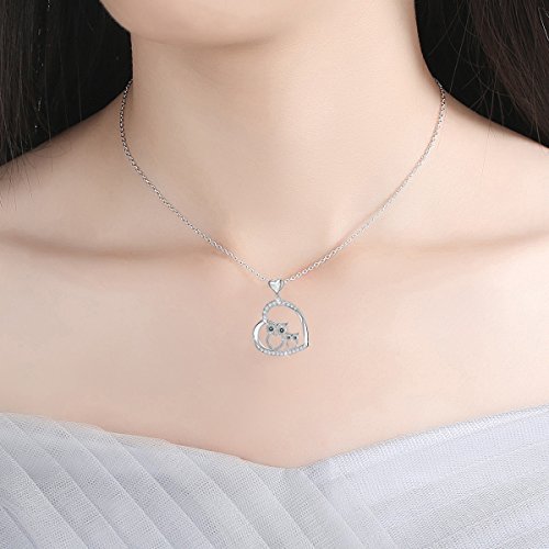 GOXO Collana con gufo Collana con ciondolo a cuore in argento sterling 925 per donne ragazze 18'' (madre e figlia-gufo)