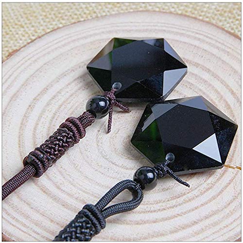 Collana con ciondolo esagramma, amuleto sacro esagramma - ossidiana nera tibetana, collana con ciondolo esagramma curativo con catena in nylon regolabile per uomini e donne (Marrone + Nero)