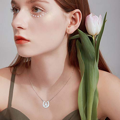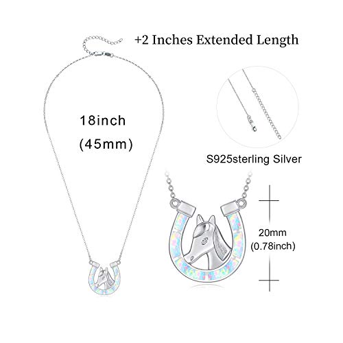 Collana con ciondolo a ferro di cavallo a testa di cavallo Collana con ciondolo a forma di opale arcobaleno Gioielli con ciondolo a catena in argento sterling 925 per donne Ragazze Regalo fortunato
