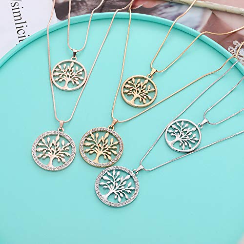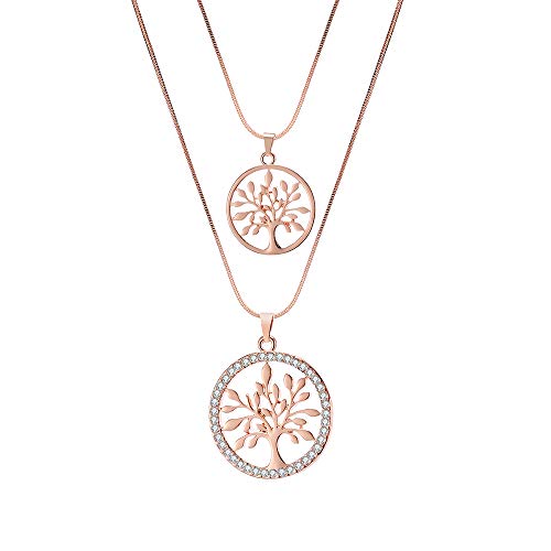 Collana con ciondolo a forma di albero della vita da donna, con catena staccabile a doppio strato, ipoallergenica, placcata in argento e oro rosa con cristalli