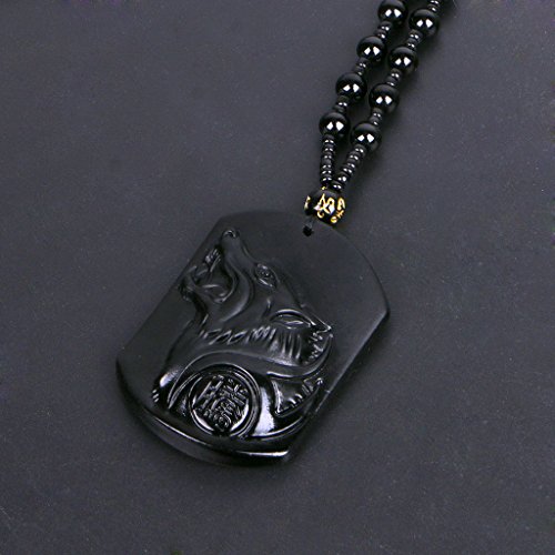 Mya - 1 collana con ciondolo a forma di amuleto con testa di lupo Hurlant ossidiana vera e propria intagliata a mano
