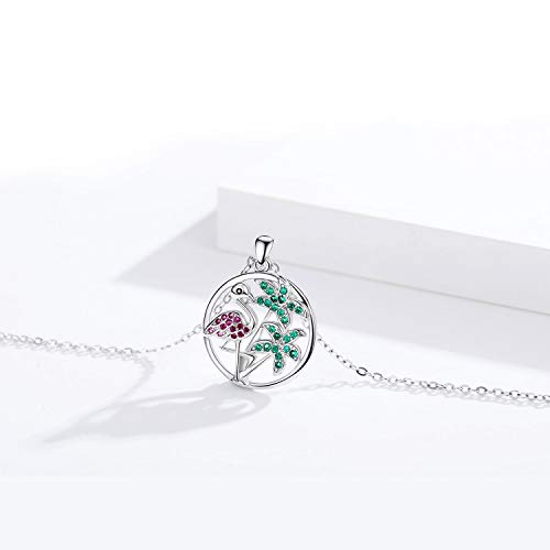 Il simbolo dei fenicotteri è libero, bello, sicuro, elegante ed energico. Le loro piume sono principalmente scarlatto, e sembra che un fuoco stia bruciando. Questa collana con fenicottero è pavimentata con zirconi 5 A+, fenicottero con albero di cocco, ha anche uno stile tropicale e uno stile. Con questa delicata ed elegante collana a forma di fenicottero che si trova vicino al tuo cuore, sentendosi splendida e unica con qualsiasi vestito.