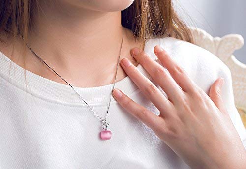 Collana con ciondolo a forma di mela in argento Sterling con perle e quarzo rosa, con catena e scatola per le donne, Cristallo, Occhio di gatto