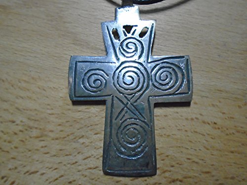 Collana con ciondolo a forma di croce etiopica, 64 mm x 44 mm, in argento antico, con ciondolo a forma di spirali incise, bella collana placcata in argento 925, con sacchetto regalo in velluto,