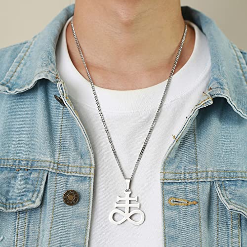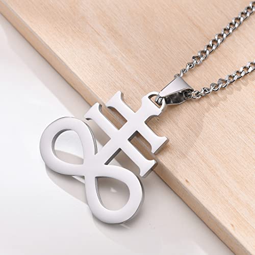 Collana con ciondolo a forma di croce leviatana, simbolo satanico, in acciaio inox, per uomo e donna, catenina da 61 cm e Acciaio inossidabile, colore: Argento, cod. P-PN-1067S