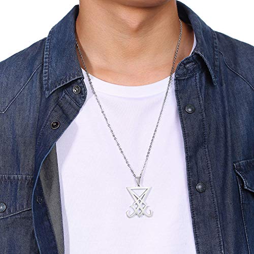 Collana da Uomo con Ciondolo A Forma di Croce di Leviatano Satanico E Gotico, Amuleto Wiccano, Baphomet, Capra di Mendes, Sigillo di Lucidfero, con Ciondolo Invertito