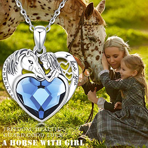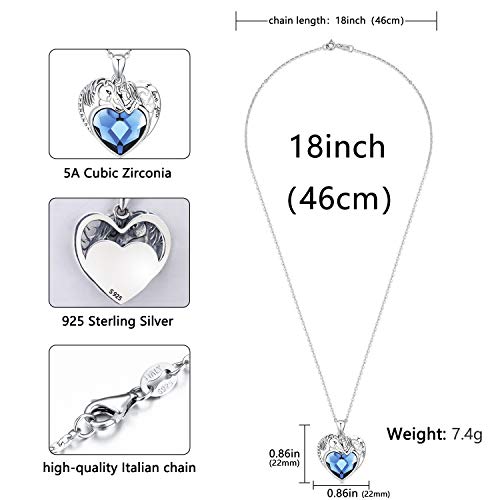 Specifiche: il ciondolo a forma di cuore in argento sterling misura 0,87 x 0,87 pollici, catena italiana da 18 pollici, peso: 7,4 g. Confezione: 1x ciondolo in cristallo di cavallo, 1x catena d'argento e 1 x squisita confezione regalo. Il ciondolo a forma di cavallo in cristallo blu riflette perfettamente la bellezza della clavicola femminile che porta libertà e buona fortuna. Il set di gioielli con zirconi di cavallo è un elemento indispensabile nella confezione regalo di gioielli da donna.