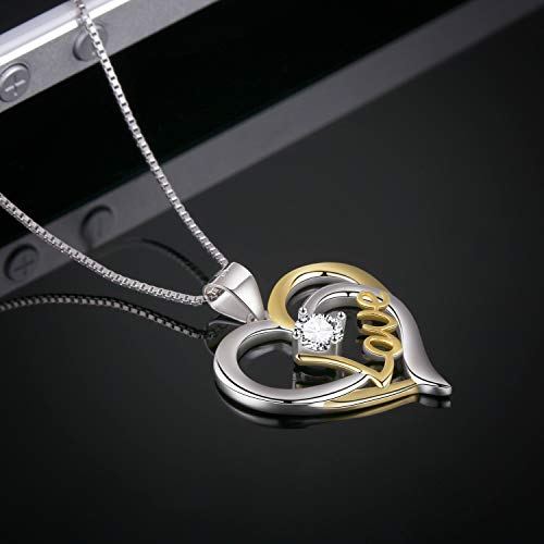 Collana con ciondolo a forma di cuore, da donna, in argento Sterling 925, con cuore dorato, lunghezza: 45 cm, regalo da donna