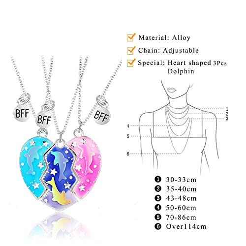 Collana con ciondolo a forma di cuore magnetico con delfino, per 3 ragazze, ideale come regalo per la migliore amica, per ragazze, per donne, laurea, compleanno, Natale, Lega di zinco