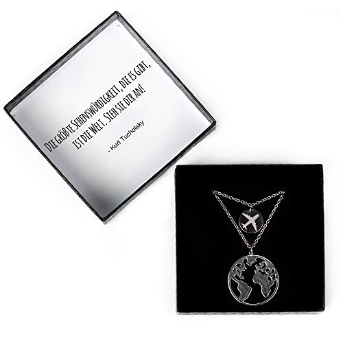 Collana con ciondolo a forma di globo terrestre, in acciaio inox, la vostra compagna nei viaggi