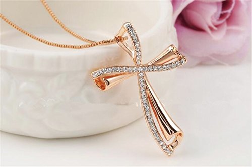 Collana con ciondolo a forma di piccola croce, in oro rosa e diamanti
