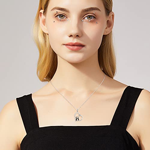 Collana con ciondolo a forma di pinguino, in argento Sterling, con ciondolo a forma di cuore, con scritta I Love You Forever e scritta I Love You For