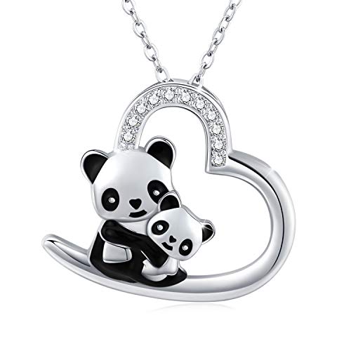 Collana con ciondolo a forma di pinguino, panda/koala, in argento Sterling 925, con ciondolo a forma di cuore, idea regalo per le donne, 45,7 cm + 5,1 cm e Argento, cod. KINGWHYTE