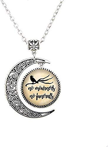 Collana con ciondolo a forma di luna con scritta "No Mourners No Funerals Moon", libro Nerd Book Lover Reader, collana a cupola in vetro