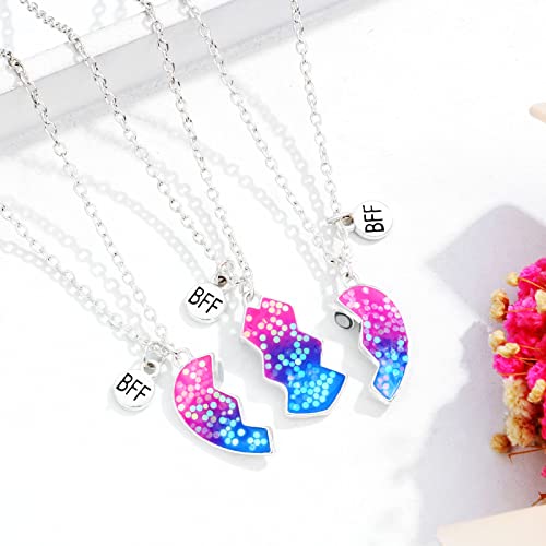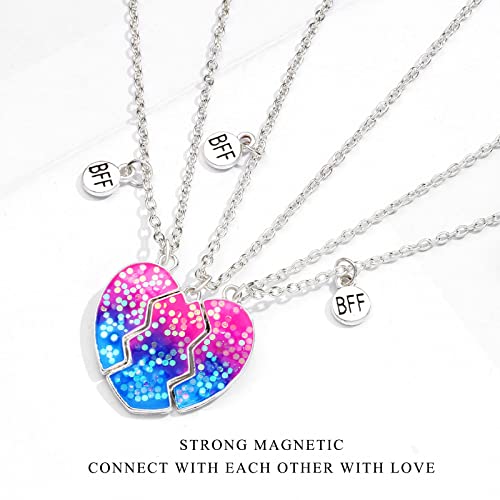 Ispirazione del design: tre ciondoli magnetici abbinati vengono tirati l'uno verso l'altro per indicare il tuo amore. Combinati con paillettes lampeggianti e cuore d'amore: simboleggia l'amicizia tra te e i tuoi migliori amici bella come un arcobaleno. È un ottimo regalo per ragazze adolescenti per mostrare il tuo amore agli amici, significa amicizia per sempre.
