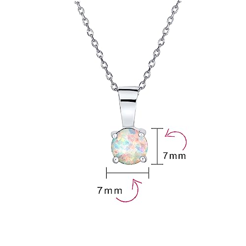 Misura: Pietra: 7 mm Catena da 16" con 2" di estensione Peso: 1,6 grammi Materiale: Opale sintetica, Argento 925 Placcatura al rodio Finitura anti appannamento, IPOALLERGENICO - Senza piombo Senza nichel Ogni pezzo ha il marchio .925 che garantisce qualità e artigianalità.