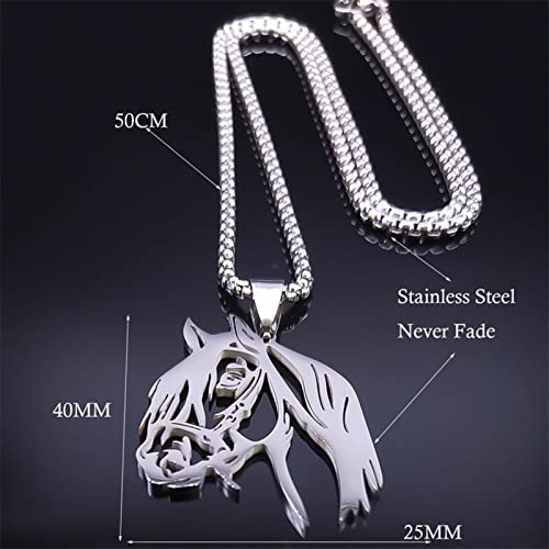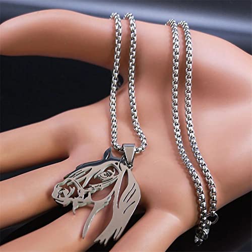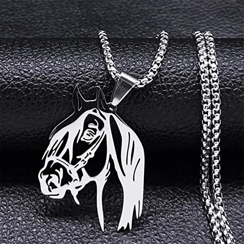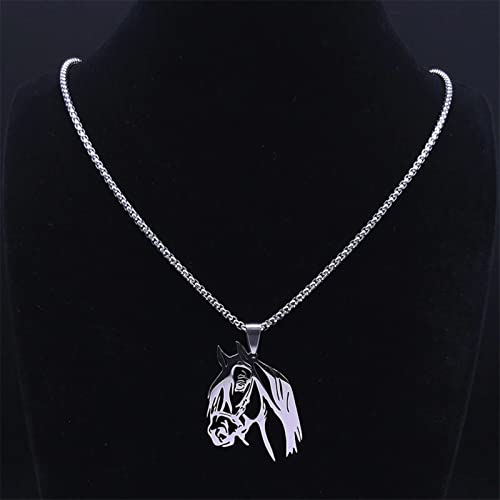 Collana con Ciondolo Testa di Cavallo Moda per Donna/Uomo Colore Argento Collane con Animali Gioielli Regalo Colgantes