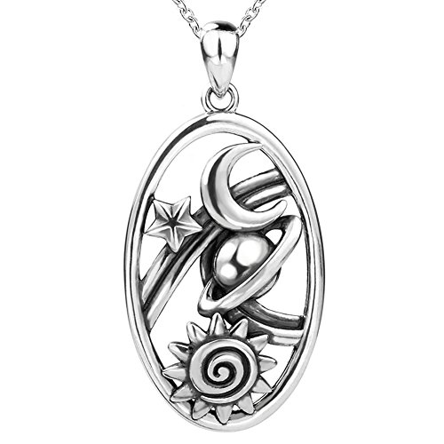 Collana con ciondolo Universo del Sole in argento Sterling 925 ossidato con stella e luna, stile retrò, gioiello da donna