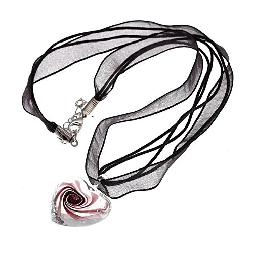 COLLANA CIONDOLO IN VETRO MURANO CUORE VIOLETTO 28mm