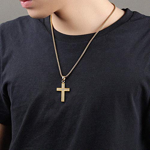 YL Collana Uomo Croce da Acciaio Inox Normale Semplice Collana Croce con 60 Centimetri Donna Gioiell (Yellow)