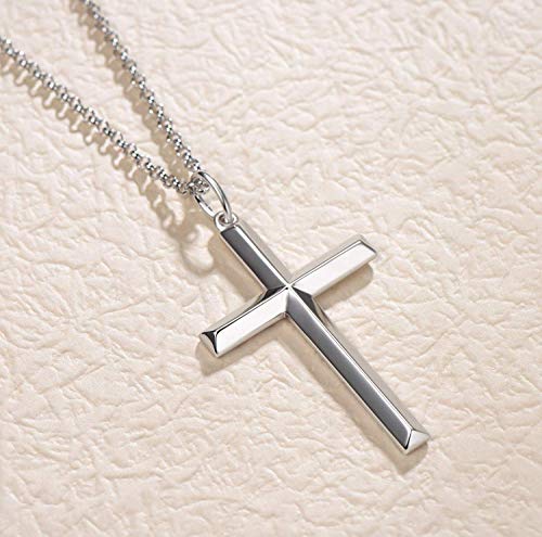 Collana Croce Uomo in Argento Sterling 925 Medio Grande Crocifisso Ciondolo con Catena, Catena Lunghezza: 60 cm