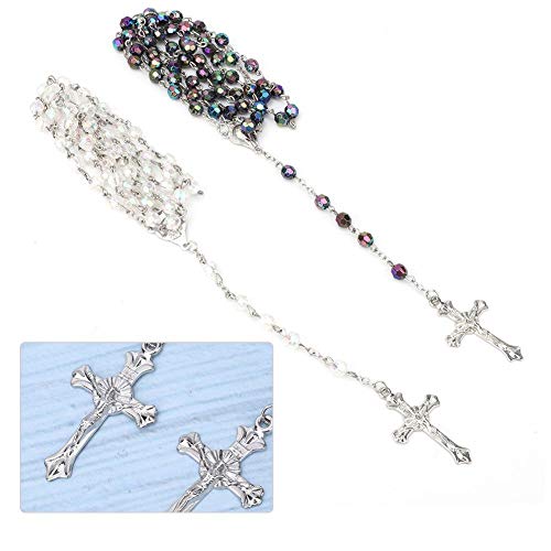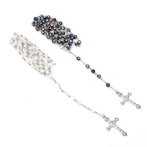 2PCS Collana con croce, catena di perline di plastica cristiane cattoliche Collana con pendente a croce di Gesù per regali di compleanno per la festa della mamma delle donne