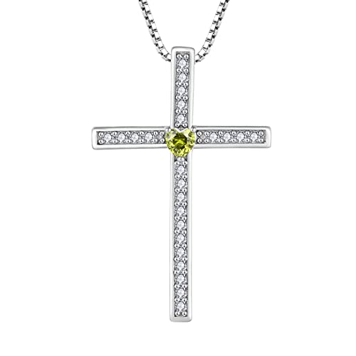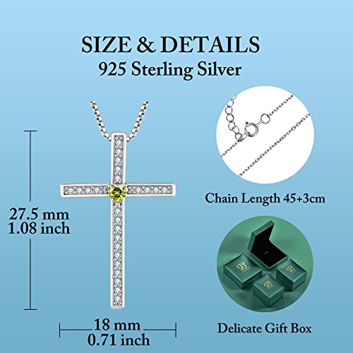 FJ Collana Croce Donna Argento 925 Ciondolo con Agosto Pietra Portafortuna Peridoto Gioielli Regalo per Donna