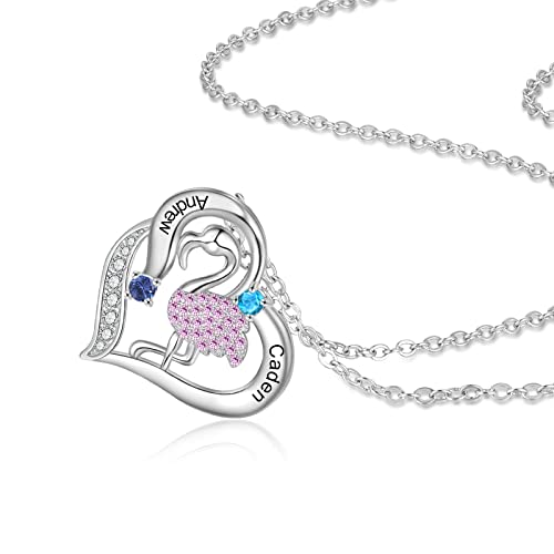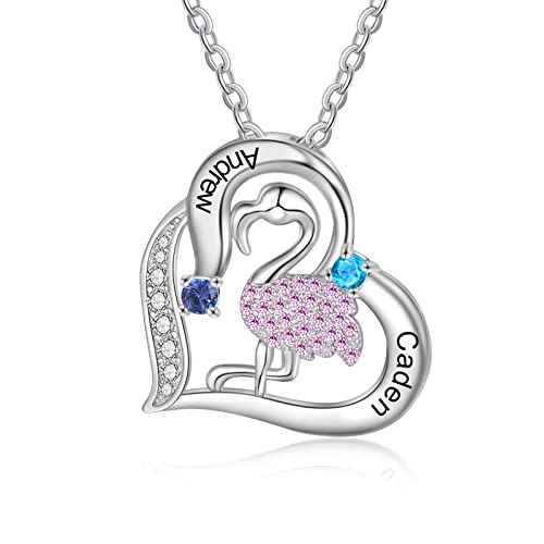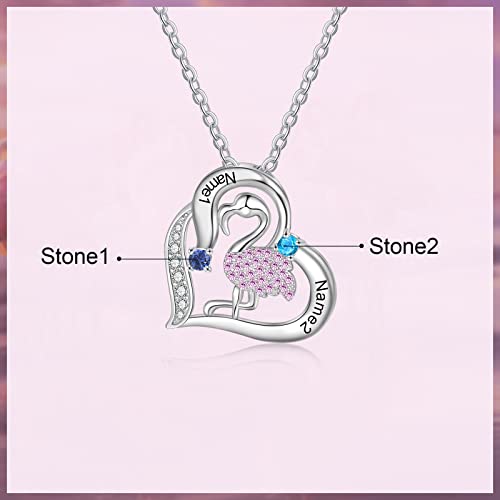 Collana Cuore Personalizzata Fenicottero per Donne 925 Ciondolo Argento con 2-4 Nome Birthstone Incisione Madre Figlia BFF Catena Gioielli Regalo per San Valentino Natale (2 Nome)