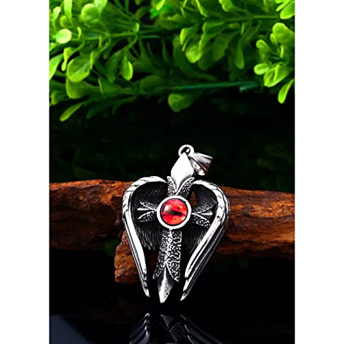 Collana Demon Cross Lucifer Wings Collana con Ciondolo da Uomo Collana con Ciondolo a Croce con Gemma Rossa Vintage Stile Punk Rock Party Jewelry