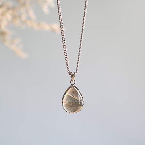 Splendida e preziosa collana in argento con ciondolo goccia in labradorite, una pietra dai mille riflessi che dona fascino ed eleganza. La semplicità e la cura per i dettagli rendono questo gioiello un regalo adatto per ogni occasione: compleanno, anniversario, San Valentino, Natale, laurea, diploma. Perfetto per la mamma, una sorella, un'amica, la fidanzata, la moglie, una collega