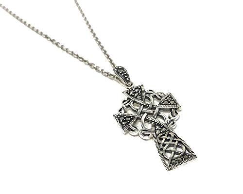 Collana da donna in argento sterling con croce celtica marcasite su catenina ossidata da 46 cm