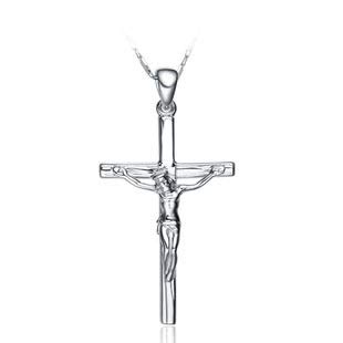 Collana da donna in argento Sterling 925 massiccio con crocifisso cristiano Gesù Crocifisso