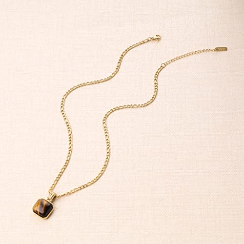 COAI Collana da Donna con Catena Figaro in Acciaio Inox Placcato Oro e Ciondolo Quadrato in Occhio di Tigre