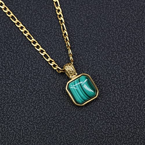 COAI Collana da Donna con Catena Figaro in Acciaio Inox Placcato Oro e Ciondolo Quadrato in Malachite