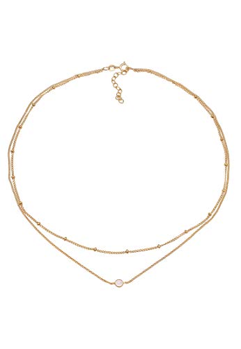 Elli Collana Donna Choker Layer Look Look Palla Catena Collana a catena con quarzo rosa in argento 925 placcato oro 925
