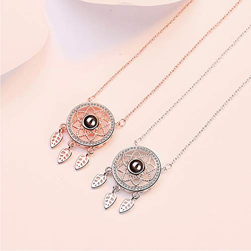 Collana da donna con ciondolo a forma di acchiappasogni e messaggio “Ti amo” in 100 lingue diverse, in argento Sterling 925 e oro rosa