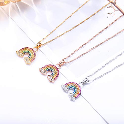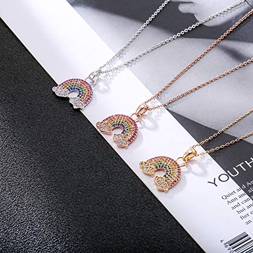 Collana da donna con ciondolo a forma di arcobaleno, placcata in oro rosa e argento, con zirconia cubica