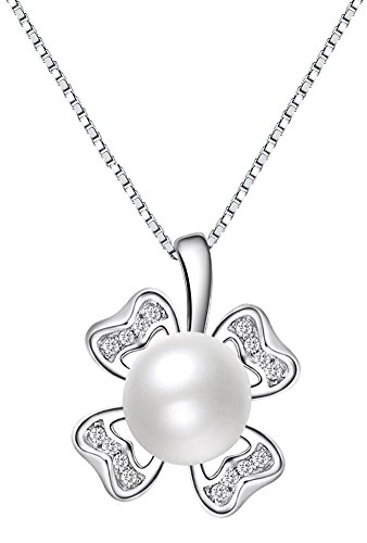 Red Moon Collana Donna con Ciondolo Quadrifoglio Argento Sterling 925 con Perle d'Acqua Dolce Naturale 7mm [RM4174]
