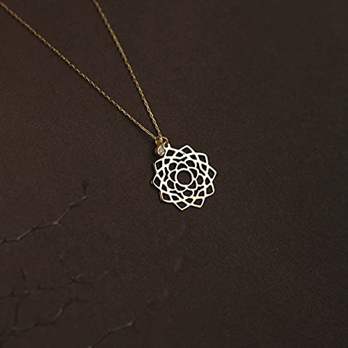 Collana da donna in oro giallo 14 carati 585, con ciondolo a forma di fiore della vita Chakra e diamante da 0,01 carati, dimensione catenina: 45 cm, idea regalo