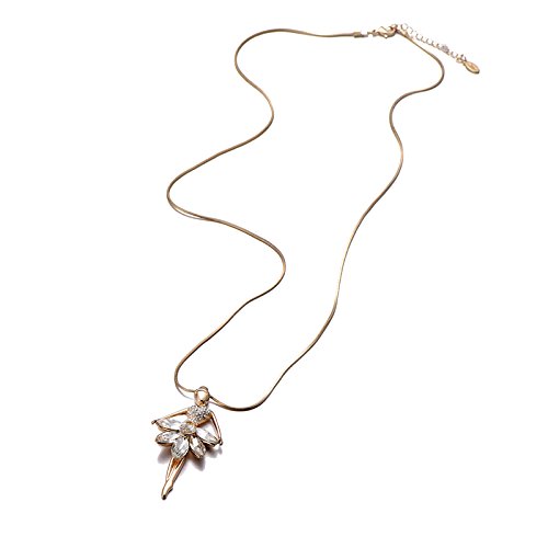 Collana da donna Collana con pendente a forma di ballerina abbagliante con cristallo lucido per collana a catena lunga placcata oro da donna (Oro rosa)