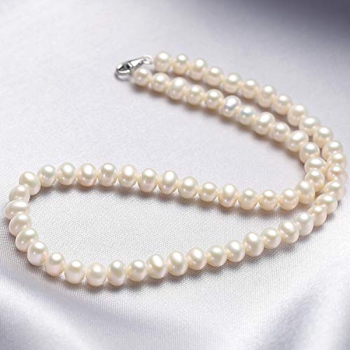 VIKI LYNN Collana girocollo di perle da 43 cm (circa 43 cm) con perle rotonde di qualità AAA da 6 a 7 mm con chiusura a moschettone in argento sterling 925.