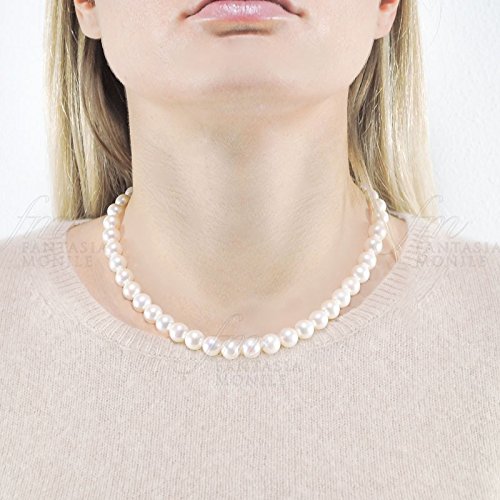 Demetra, Collana Donna con perle bianche Fresh Water, diametro 8,5/9, Chiusura a moschettone in Oro bianco 18kt, Lunghezza 40 cm circa, Completo di Gift Box e certificato di garanzia, Consegna in 48H, isole escluse