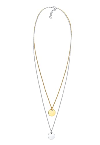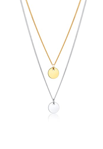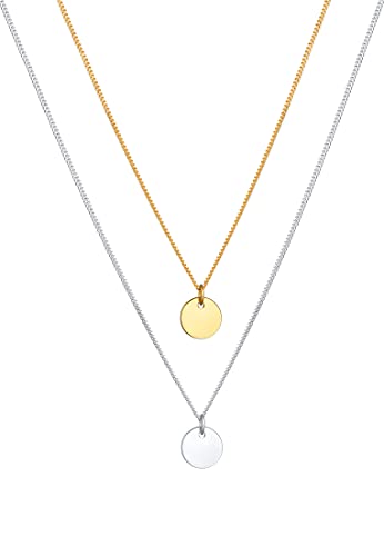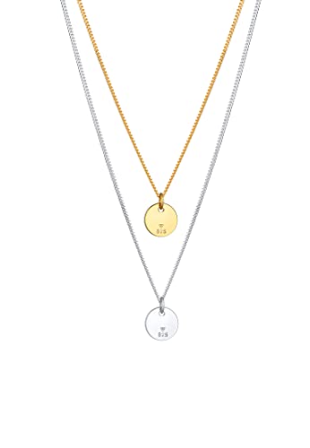 Elli Collana Donne Ciondolo Placchetta a 2 Strati in Argento Sterlino 925