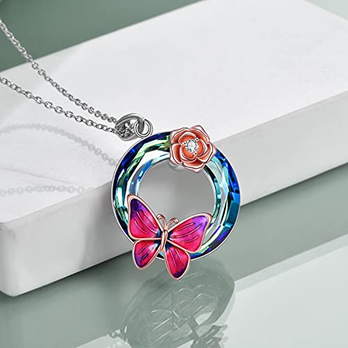 YFN Collana Farfalla in Argento Sterling Fiore Rosa Ciondolo Farfalla Gioielli Regali per Donna Ragazze
