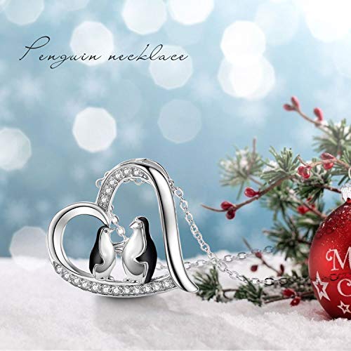 Collana a forma di pinguino, panda, koala, ape, zampa, in argento Sterling 925, con ciondolo a forma di cuore animale, idea regalo per le donne, 45,7 cm + 5,1 cm, Argento sterling