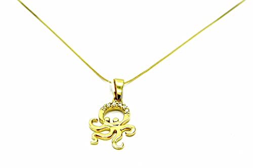 Collana Oro Giallo 18kt (750) Catenina Veneta Pendente Polipo Polipetto con Zirconi Donna Ragazza Bambina