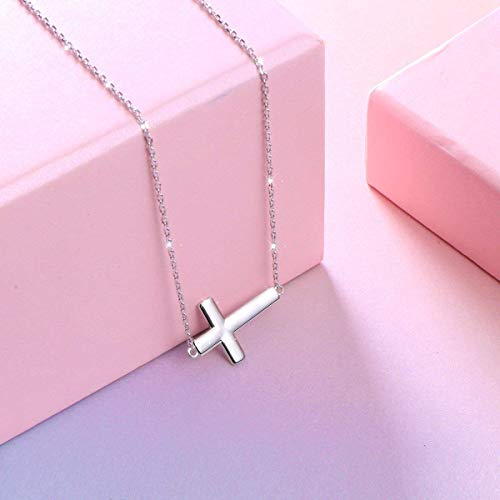 BGTY - Collana girocollo in argento Sterling S925, con croce laterale, lunghezza 40,6 + 5 cm